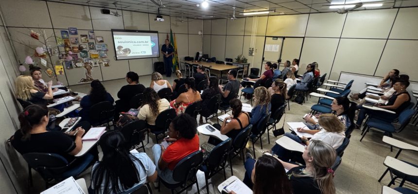 Professores coordenadores do ensino fundamental e da pré-escola da rede municipal participaram, na manhã desta quinta-feira (26), de uma formação sobre o uso da plataforma Iônica, ambiente digital que reúne livros, atividades e ferramentas de acompanhamento escolar.